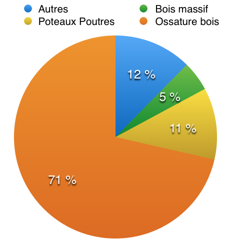 Depuis 5 ans, la maison bois n’a jamais autant augmenté. Aujourd’hui nous comptons pas moins de 2450 entreprises et 32 000 salariés dans le secteur bois (construction, charpente, …). L’activité est en constante augmentation, ce sont plus de 11% de maisons qui ont été mises en chantiers l’année dernière.Nous espérons que ces chiffres vous auront un peu mieux éclairé sur la maison bois et son marché. Cette technique constructive tend à augmenter encore dans les années à venir : facilité de mise en oeuvre, prix intéressant, rapidité de montage, meilleur respect des réglementations thermiques, l’ossature bois est la maison de demain.Contactez-nous pour en savoir plus !